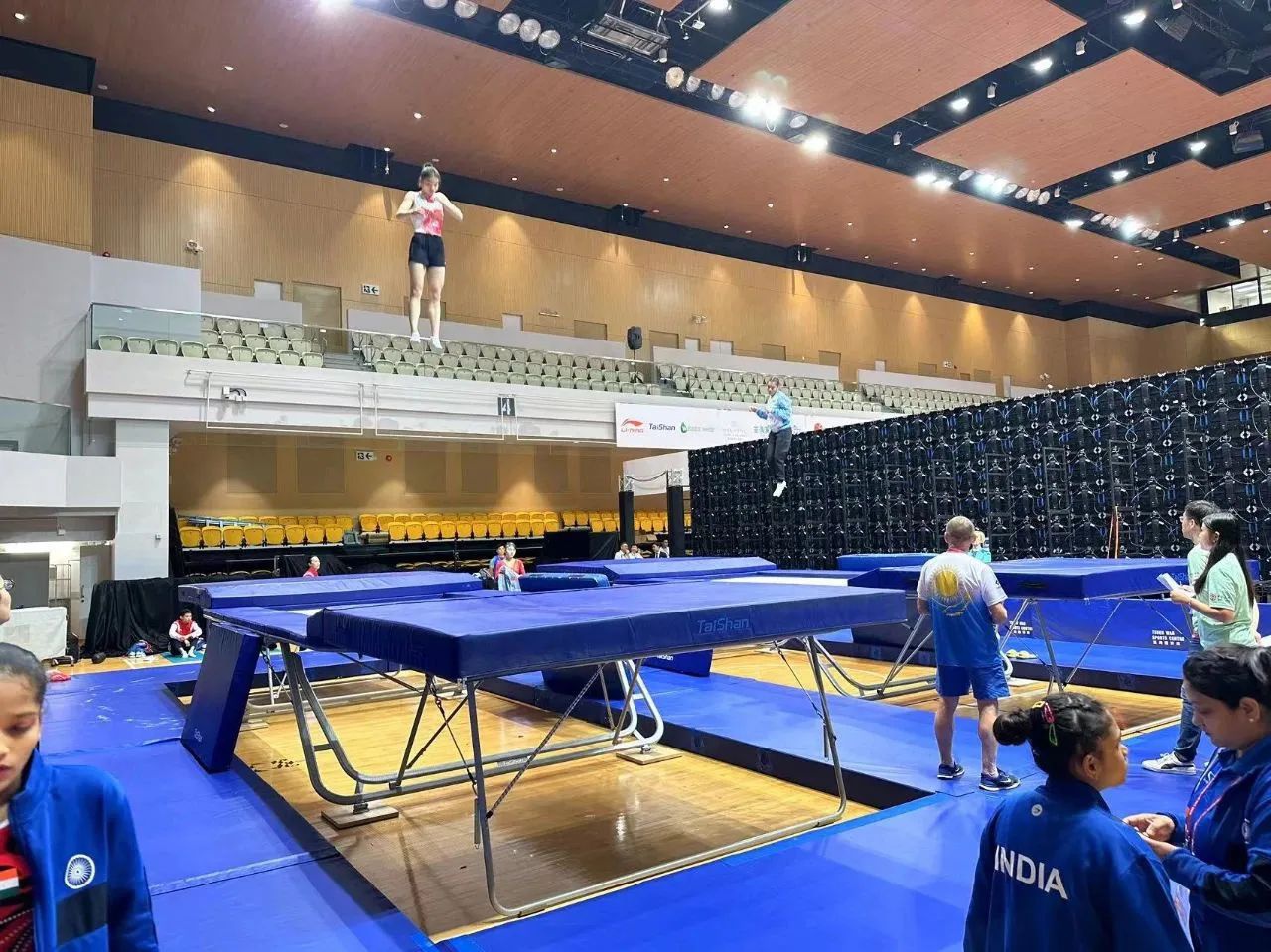 为服务好本届蹦床锦标赛,william威廉亚洲官方保障人员严格按照赛事服务手册开展工作,从场馆的规划布局、器材的安装调试、标准高度的校准、过程巡检等各个环节,一丝不苟、严谨细致,确保蹦床器材安装的准确无误,始终践行国际赛场上的中国标准,见证william威廉亚洲官方全领域规划、设计、制造、集成、运营、服务一站式解决方案的发展理念。